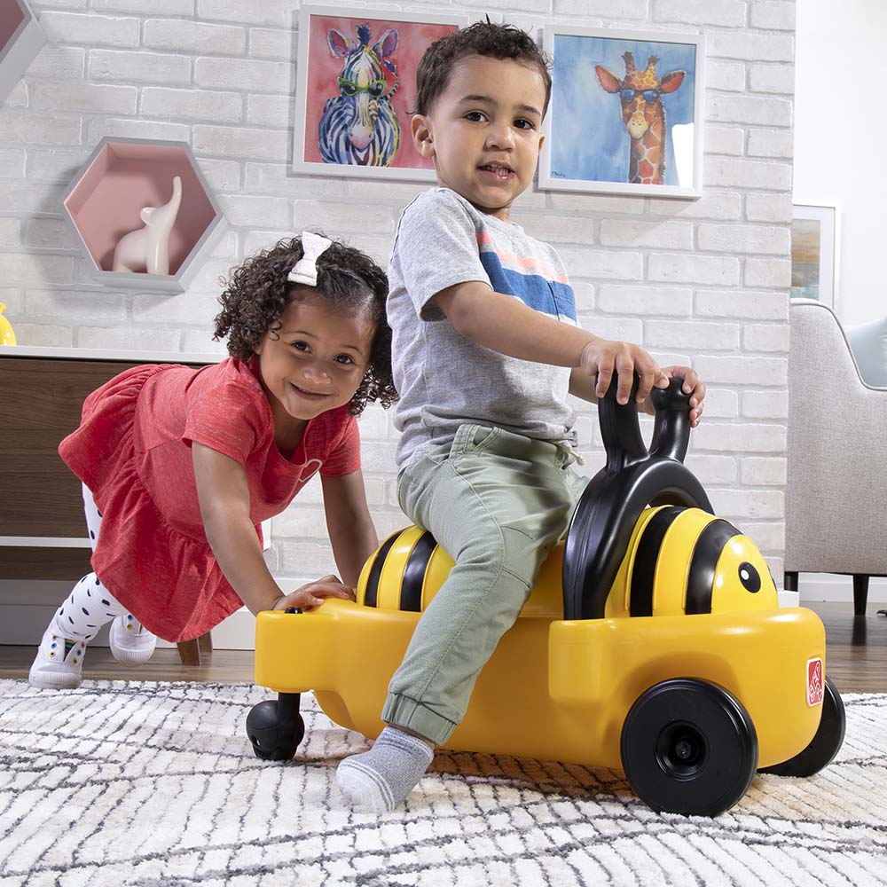 Bouncy Buggy Bumblebee Little ones can’t wait to bounce and ride with this adorable 2-in-1 bumblebee-themed buggy. A soft, inflatable cushion nests inside the molded body for comfort and durability and plenty of cute bumblebee personality! Kids will develop their motor skills and coordination while having fun bouncing and scooting around aboard their bumblebee friend. Extra bouncing play and balance practice is included; just remove the cushion from the buggy base to extend playtime! Made in the USA of US and imported parts. Features: Develop motor skills and coordination while having fun bouncing and scooting. A soft, inflatable cushion nests inside the molded body for comfort and durability – and plenty of cute bumblebee personality! Bumblebee antennae double as chunky handles to help little ones balance as they bounce and ride. In the box: Buggy base, bumblebee cushion, hand pump. 2-in-1 bumblebee ride-on toy promotes movement and balance. Develop motor skills and coordination while having fun! Inflatable cushion nests within the molded body for comfort and durability. Bumblebee antennae double as chunky handles to help little ones balance as they bounce and ride! Remove the cushion for extra bouncing play. In the box: Buggy base, bumblebee cushion, hand pump. Also available in Ladybug Maximum childs weight: 42 lbs. (19.05 kg.) Overview: Product Dimensions: 33.02 x 32.38 x 57.78 cm Package Dimensions: 36.83 x 20.63 x 55.24 cm Weight: 3.75KG Shipping Weight: 3.75KG Recommended Age: Suitable for 18 to 36 months WhatsApp: 0503814302