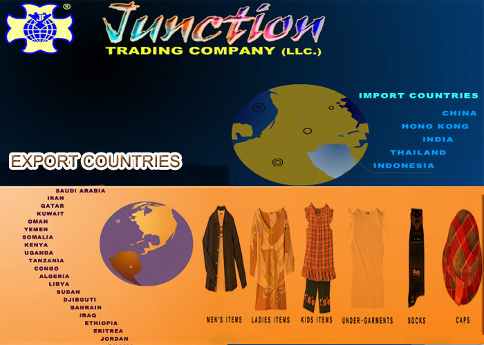 عربىWe are mainly involved in import & export business of readymade garments, specialized in jeans wear, men’s shirts, trousers, jackets, T-shirts, caps, ladies blouses, pants, 2pcs set, sweaters, cardigans and all kinds of men’s/ladies/children’s under-garments, night wear, socks, gloves, school bags, hand bags, traveling bags etc.