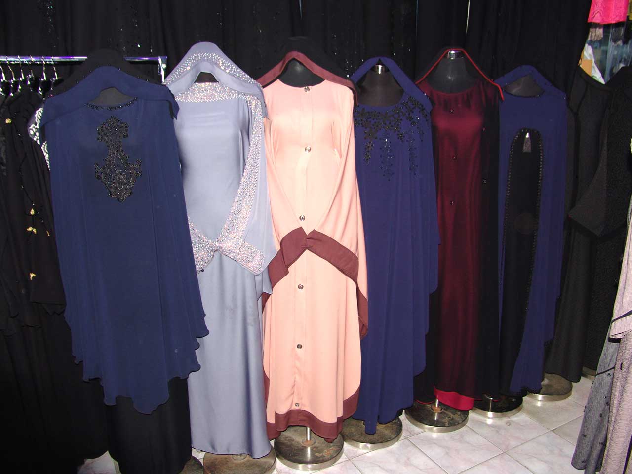 We are dealing in all kind of abaya and sheila and neqab, we do Tailoring,and hand embroidery.