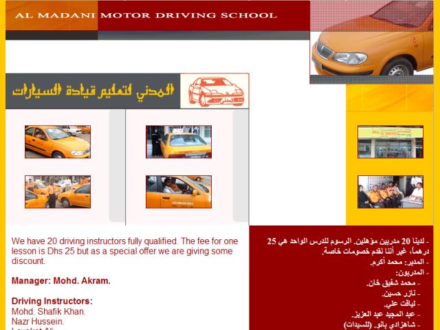We have 20 driving instructors fully qualified. The fee for one lesson is Dhs 25 but as a special offer we are giving some discount. Manager: Mohd. Akram. Driving Instructors: Mohd. Shafik Khan. Nazr Hussein. Leyakat Ali. Abdul Magid Abdul Aziz. Shehzadi Bano. (Ladies)